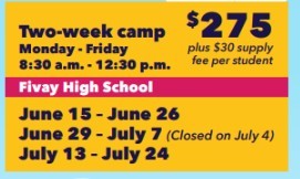 Due to budgetary considerations, we will be implementing a supply fee for all students enrolling in our summer camps this year. All camp fees and supply fees are non-refundable. Once registration is complete and you have made your payment, no refunds will be issued for any reason,
