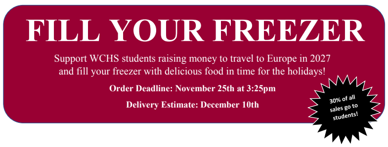 If you choose to support all participating students (general), you will need to pick up your order from WCHS on the delivery date. * We will phone the number provided on this order form prior to the date to confirm delivery. * If you support a specific (individual) student, that student is responsible to pick up your order and deliver it to you.